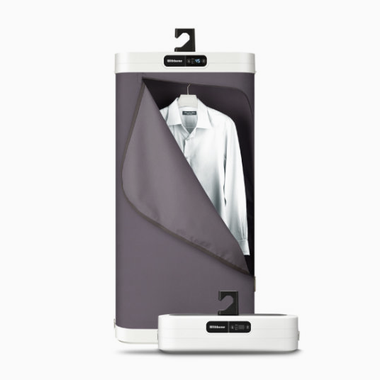 위드홈의 의류관리기는 스마트 행어와 진동 케어로 의류를 관리할 수 있는 제품이다. 프리미엄 패브릭 재질의 제품으로, 접어서 휴대할 수 있으며 거치형으로도 튼튼하게 사용할 수 있는 제품이다.