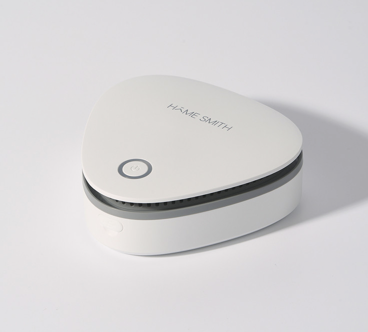 홈스미스의 살균탈취기는 촘촘하게 설계된 배출구로 제품 사방에서 세균을 빨아들여 살균하는 살균탈취기다. 스마트폰보다도 작은 사이즈를 가지고 있어서 공간 활용 능력이 뛰어나며, 무게가 가벼워 휴대하고 설치하기 간편한 제품이다.