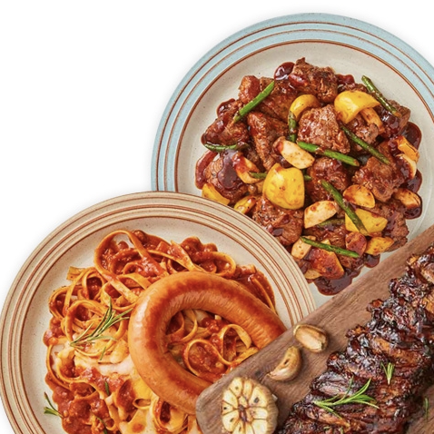 심플리쿡과 승우아빠가 협업한 간편식 메뉴는 마이야르 커피소스 바베큐폭립(15,900원), 마이야르 쯔란 갈비양념 큐브 스테이크(20,900원), 마이야르 칠리 콘 카르네 킬바사 파스타(11,900원)의 3종이다.