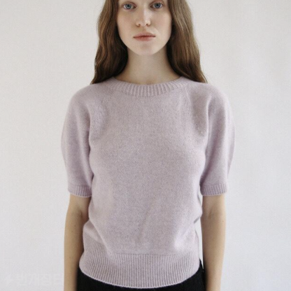 Pomme Raccoon Knit는 소매 바깥 라인을 둥글게 굴려 편직하여 볼륨감을 살린 반팔 풀오버다. 라쿤 혼방 원사로 헤어리한 소재이며, 부드러운 촉감의 원사로 맨살에도 착용하기 좋은 소재다.