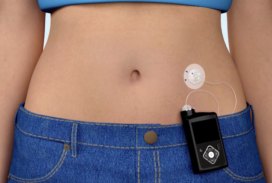 ‘인슐린 자동주입기’라고도 하며 보통 3~4일 정도 사용할 인슐린을 기기에 넣고, 기기와 연결된 주삿바늘(Cannula)이 피하에 삽입되어 자동 설정된 인슐린 양을 주입하는 기기입니다. 음식을 먹거나 혈당이 높을 때는 수동으로 인슐린을 주입하는데, 이때는 버튼을 누르면 인슐린이 주입됩니다.