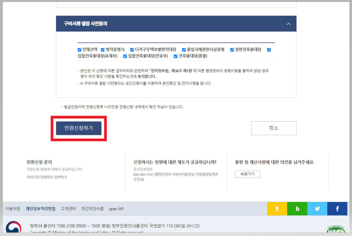 ▼ 그후 [민원신청하기] 버튼을 클릭한다. 비회원의 경우 공인인증서 인증 절차를 밟아야 한다.