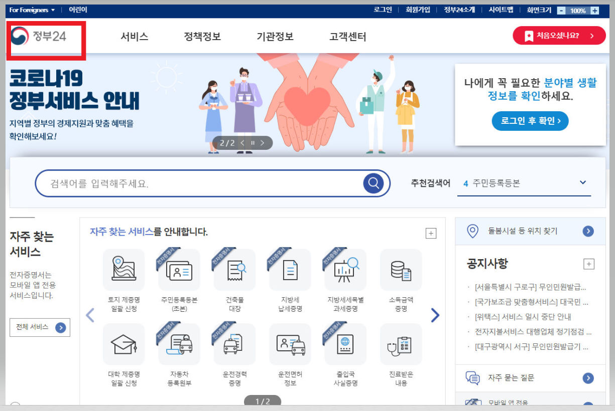 01 정부24 로그인하기