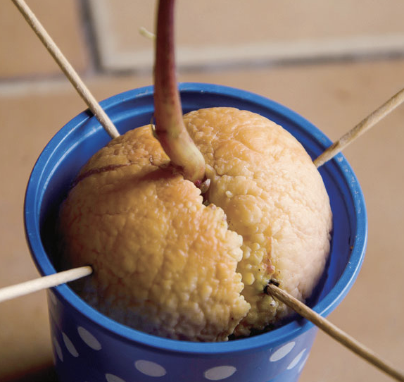 1단계) 아보카도를 먹고 남은 씨앗을 이쑤시개를 꽂습니다.