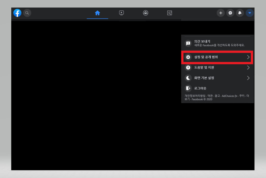 ▼ [설정 및 공개 범위] 버튼을 클릭한다.