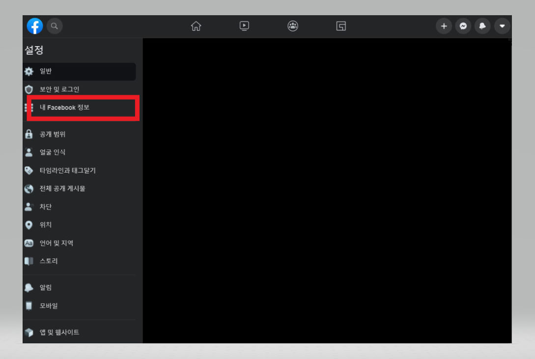 ▼ [내 Facebook 정보]에서 [비활성화 및 삭제] 버튼을 클릭해준다. 이 기능을 통해 페이스북 계정을 일시적으로 비활성화하거나 영구적으로 삭제할 수가 있다.