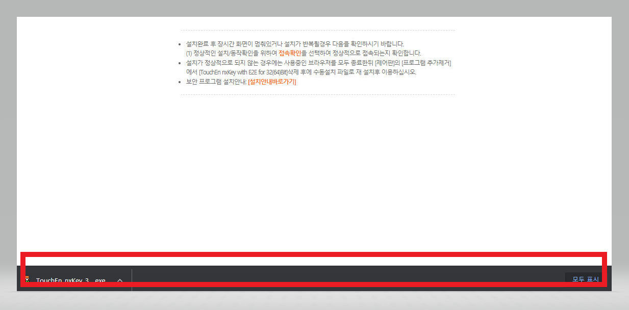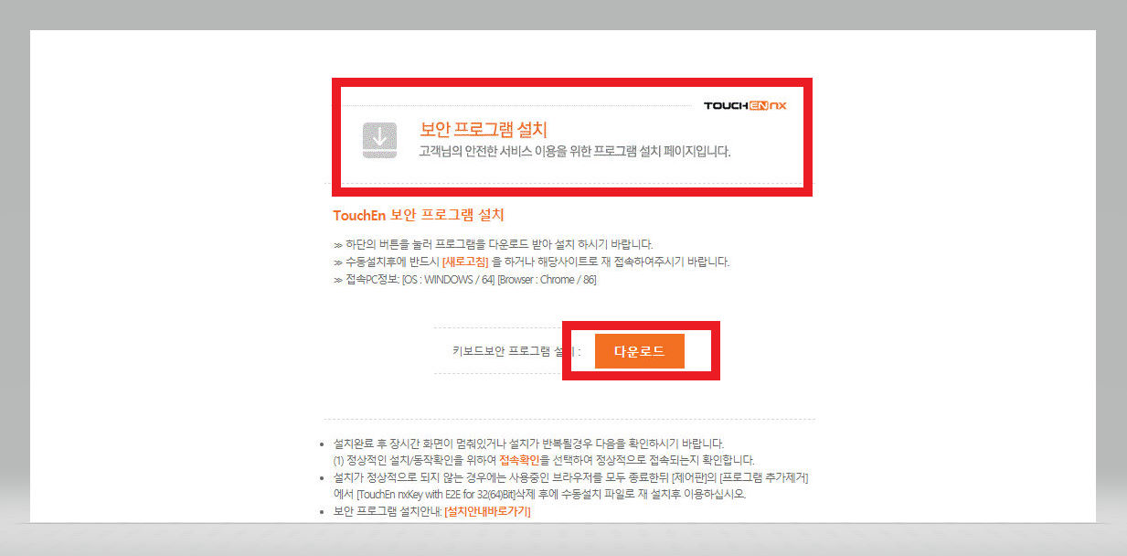 ▼ [보안 프로그램 설치] 창이 뜨면 아래의 [다운로드] 버튼을 클릭해준다.