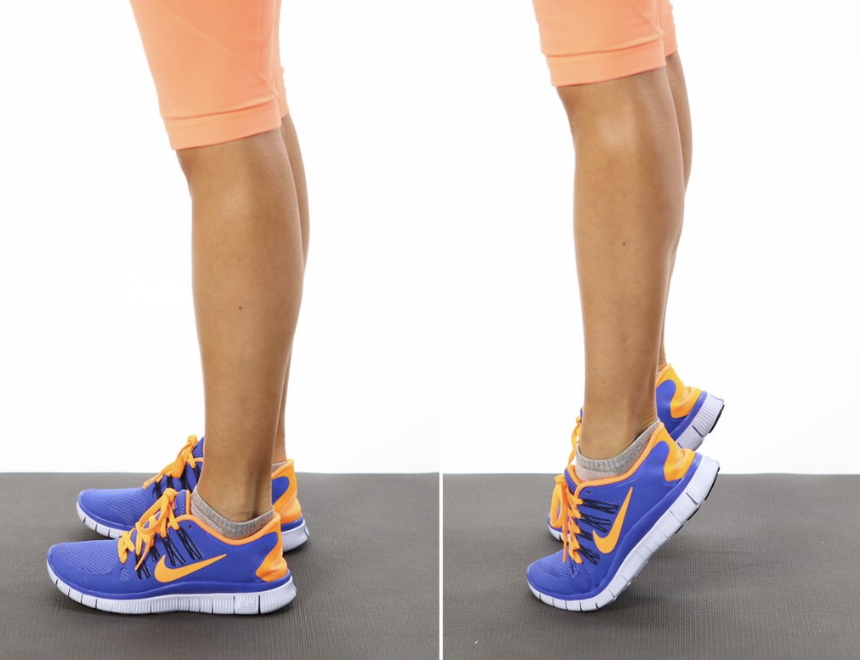 2) 올린 뒤꿈치를 내린다. 이때 바닥에 닿기 직전 다시 올려준다.