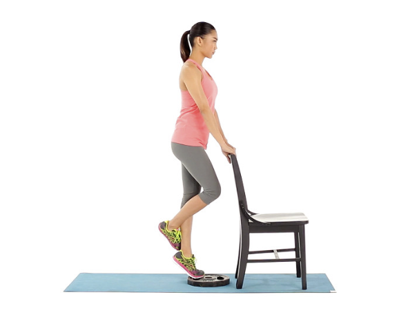 3) 30개 반복한다. 뒤꿈치를 올릴 때 허리가 젖혀지지 않도록 벽 혹은 의자를 잡고 실시한다.