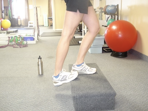 1) 사물 모서리에 발바닥 반을 댄다. (계단, 모서리, 낮은 박스 등등을 이용한다.)