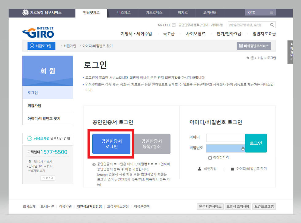 ▼ 로그인 절차는 다음과 같다. [아이디/비밀번호 로그인]을 통해 해주어도 되나, [공인인증서 로그인]을 통해 로그인을 진행해보도록 하겠다.