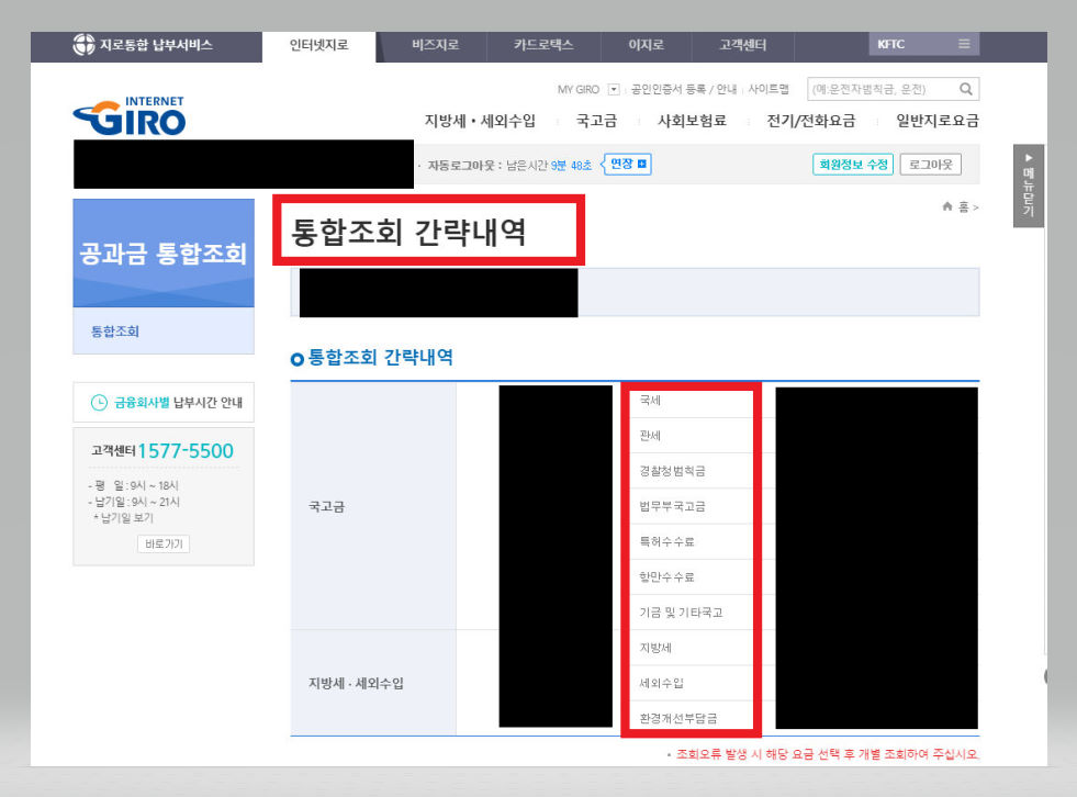▼ [공과금 통합조회]를 이용한 방법이 아닌 다른 방법은 그냥 이 화면에서 본인이 원하는 항목을 선택해주면 되는 방법이다. 다음과 같은 사항 중 본인이 납부하기를 원하는 항목을 선택해주면 된다.
