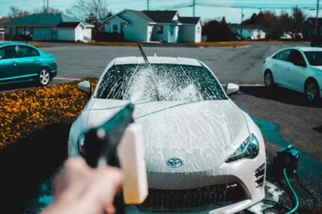 셀프세차 방법 2단계! 빨래를 시작하기 전에 빨랫감을 물에 불려주듯 차를 고압수로 한번 먼저 닦아주도록 한다. 고압수는 아래에서 위가 아닌 차체의 위에서부터 아래 방향으로 마치 쓸어내리듯 쏘아주어야 한다. 또한, 고압수를 쏠 때에는 차외의 거리를 30cm 유지해주도록 하여 소중한 차에 기스나 스크래치가 나지 않도록 해준다.