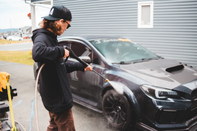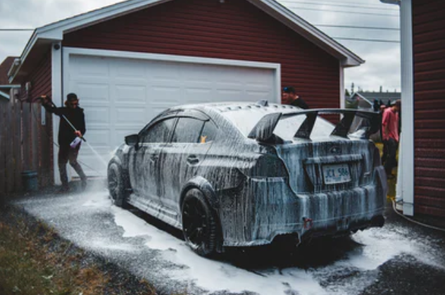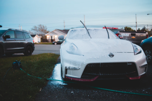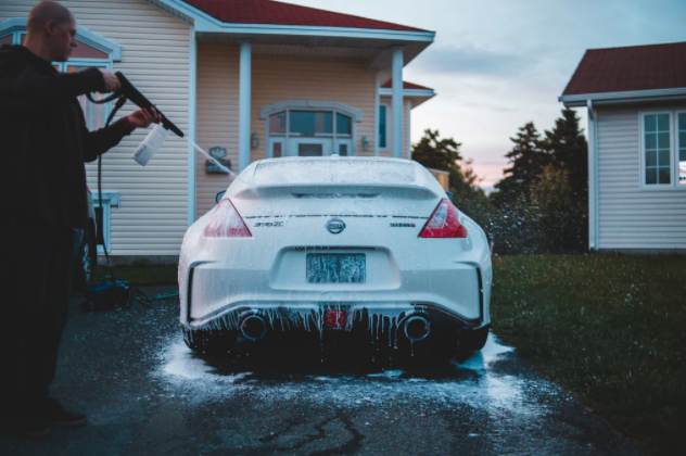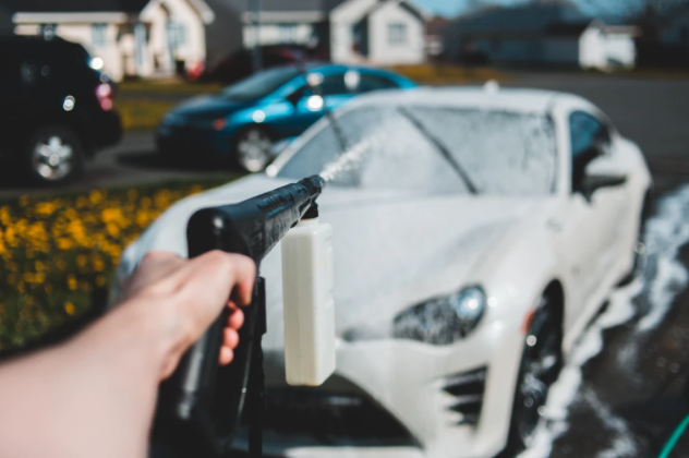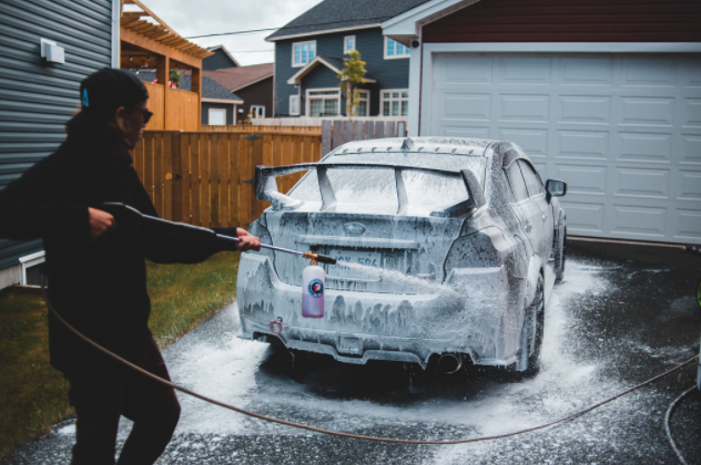 셀프세차 방법 5단계! 고압수를 활용하여 또 한번 위에서부터 아래 방향으로 쓸어내리며 거품을 잘 헹궈주도록 한다. 거품을 헹굴 때에는 트렁크와 와이퍼 그리고 백미러 등 흔히 놓치기 쉬운 부분 또한 잘 헹궈주도록 한다.