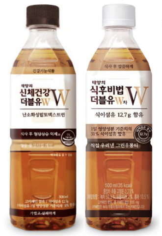 태양의 신체건강 더블유W는 혈당과 혈중지방 감소효과가 있다. 현대인의 서구화된 식습관에 맞춰 출시된 식이섬유가 풍부한 건강음료다. 기름진 음식을 즐기는 현대인의 식후 혈당 상승 억제와 혈중 중성 지질 개선에 도움을 주는 기능성 원료인 난소화성말토 텍스트린을 함유하고 있다.
