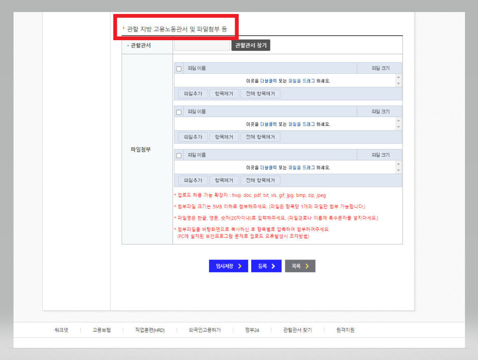 ▼ 위 내용을 전부 입력한 다음에는 추가적으로 증거로 첨부를 할 자료가 있는 경우 첨부해주도록 한다. 예컨대 만일 근로계약서를 작성을 하지 않은 경우라고 한다면 근무일지 등 해당 기간에 근무를 하였음을 보여주는 증거자료 등을 첨부해주도록 한다.