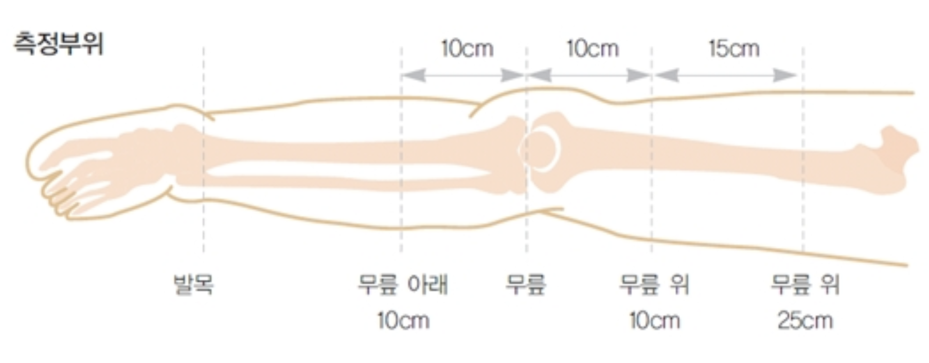 부종 여부를 확인하거나 치료를 받고 있는 중이라면 어느 정도 효과가 있는지, 병의 진행 정도는 얼마나 되는지 알기 위해 주기적인 둘레측정이 필요하다. 둘레를 측정하는 방법은 날마다 또는 일주일에 한 번 부종이 있는 다리에 줄자를 이용하여 측정한다. 측정은 활동량이 비슷한 일정한 시간에 일정한 위치에서 하는 것이 정확하다. 측정 위치는 무릎을 기준으로 무릎 아래 10cm, 무릎 위 10cm, 무릎 위 25cm에서 하도록 한다.
