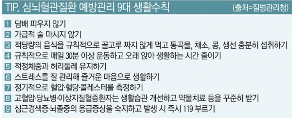 심뇌혈관질환 예방관리 9대 생활수칙 본문