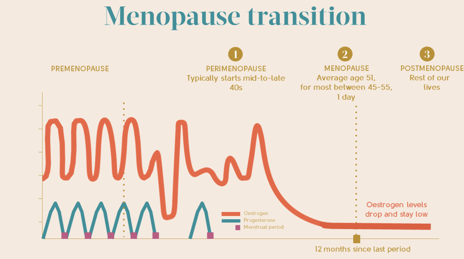 여성의 자연적인 폐경시기는 일반적으로 50세 전후로 알려졌다. 폐경이행기는 폐경이 일어나기 4~5년 전부터로 이때부터는 생리가 불규칙해지고 호르몬변화가 두드러진다.