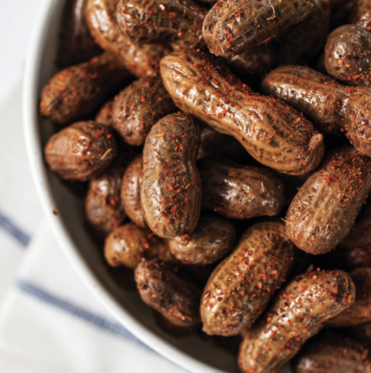 2) 냄비에(풋땅콩 300g 기준) 케이준 스파이스 2큰술, 마늘 분말 1큰술, 소금 1작은술, 파프리카 가루 1작은술 등 기호에 맞는 양념을 더해 약 1~2시간 동안 향신료가 충분히 스며들고 땅콩이 부드러워질 때까지 익혀준다.