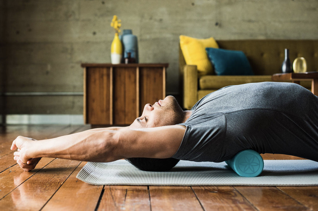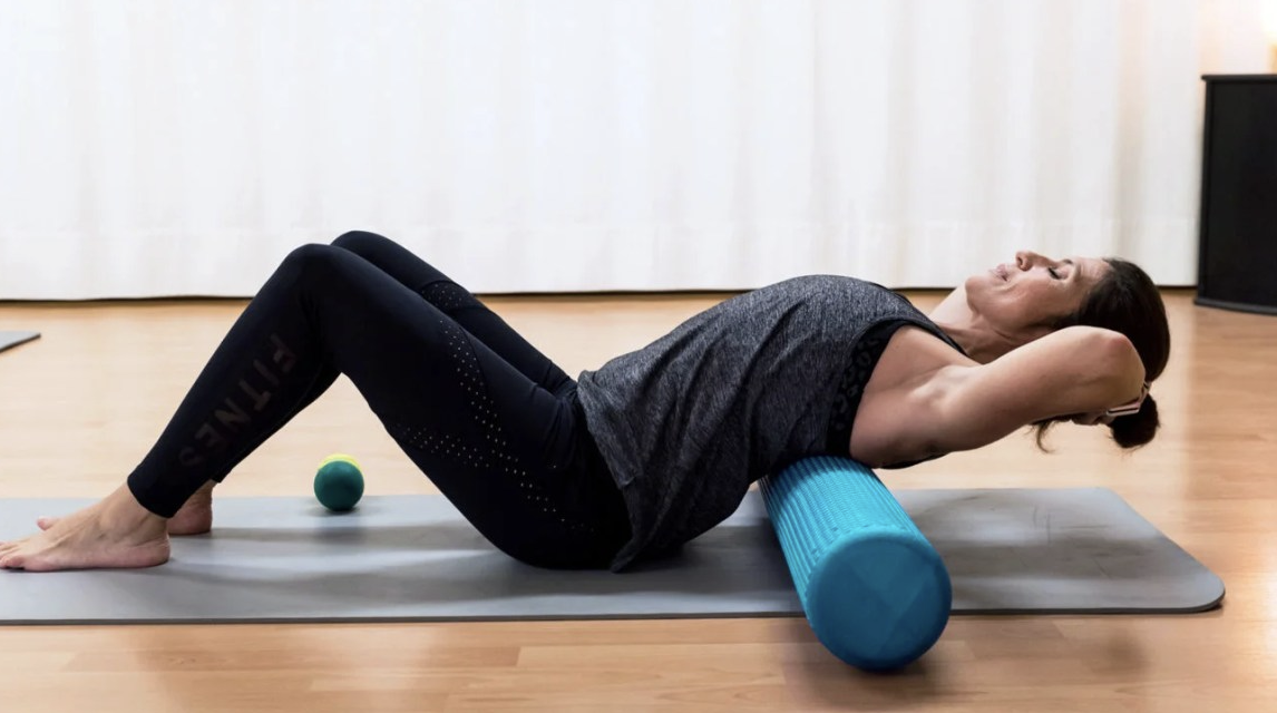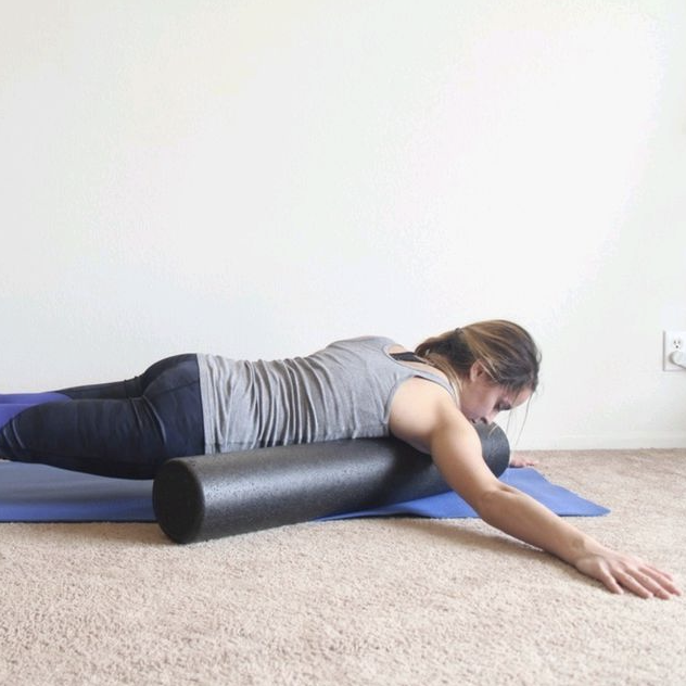 1) 날개뼈가 끝나는 부분에 폼롤러를 위치한다.