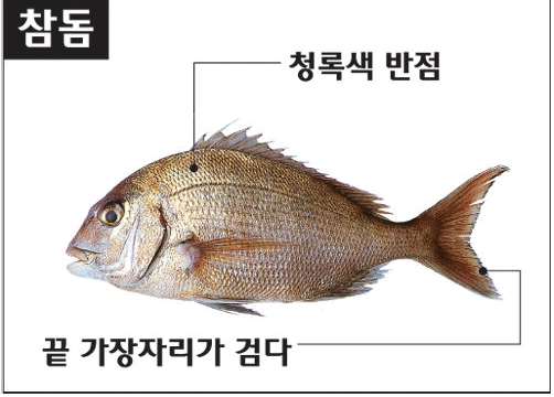 바다의 여왕이라고 불리는 참돔은 대표적인 흰살 생선으로, 고급 요리 재료로 손꼽힌다. 제사상에 올라가는 ‘참돔’은 등 부분에 파란 반점이 있다. 하지만 ‘황돔’은 반점이 없고 몸 전체가 노란 빛을 띠고 있다. 신선한 참돔은 눌러 보았을 때, 살이 단단하고 눈알 색이 선명하다.