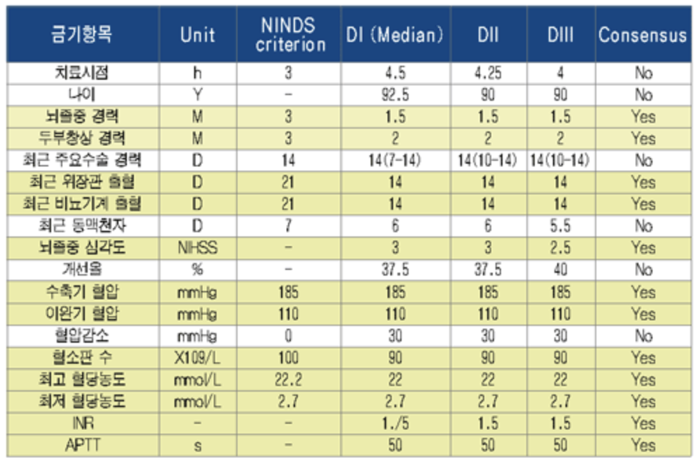 급성 허혈성 뇌졸중 환자 혈전용해제 요법 금기사항 본문