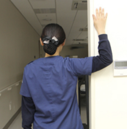 - 아픈 쪽 팔꿈치를 90도로 유지하여 턱에 고정하고 어깨를 앞쪽으로 지그시 당겨준다.