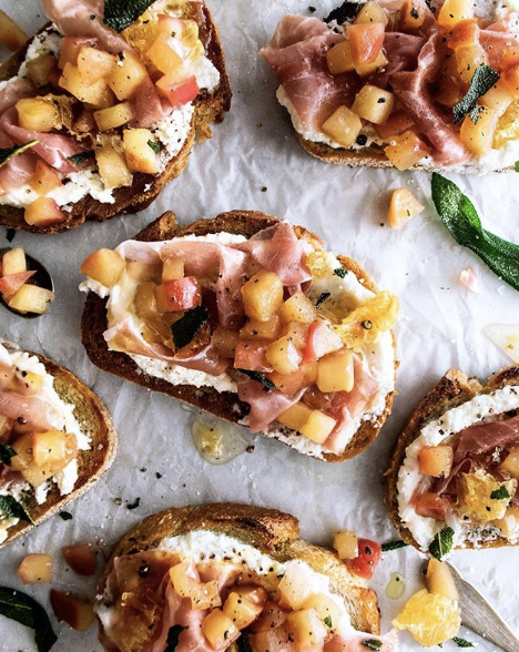 복숭아, 리코타 치즈, 올리브오일, 말돈 소금, 후추