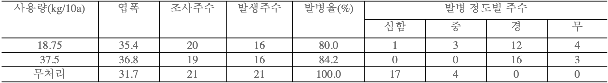 2) 300ppm의 농도는 5cm로 물을 댄 논의 경우 10a 당 15kg을 사용한 양이다.