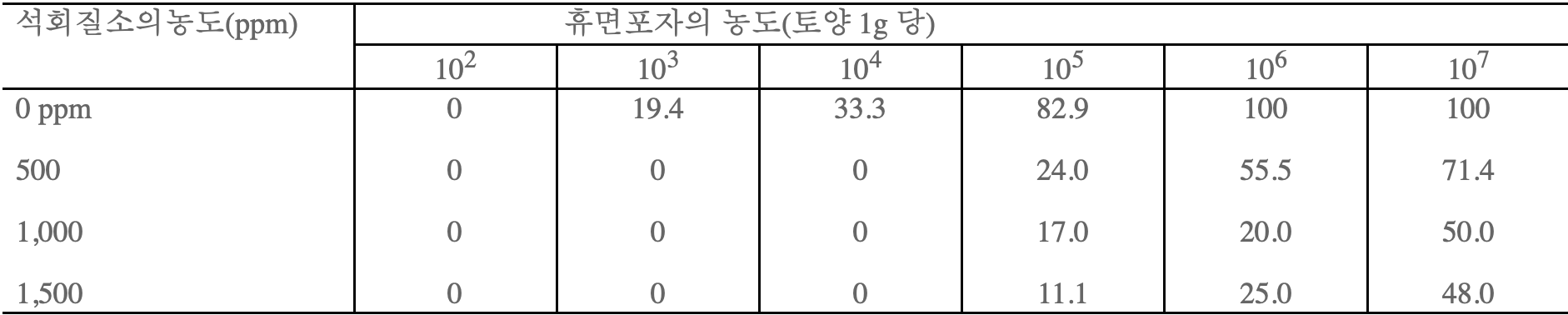 분해 속도와 토양조건의 관계는 표-2에 있다.