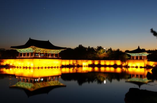 경북 여행지 추천, 경주 가볼만한곳 베스트 10 여덟 번째! 안압지는 신라 왕궁의 별궁터이다. 신라가 삼국의 통일을 이룬 직후 674년에 조성이 되었다. 신라시대 당시에는 수십개의 전각이 늘어서 있었으나 지금은 3개 건물만이 복원이 된 상태이다. 조선시대에 출판이 된 동국여지승람 등의 문서엔 폐허가 돼서 갈대가 무성한 이곳을 기러기와 오리들이 많다는 이유로 안압지라 불렀지만, 유물 발굴조사 등을 통하여 신라시대에 이 호수를 월지라고 불렀으므로 현재는 동궁과 월지라고 부르고 있다. 현재 복원공사가 많이 이루어졌고, 특히 야경이 아름답다. 주말에는 방문하는 사람들이 많아 주차장이 포화상태가 될 정도로 혼잡할 수가 있다.