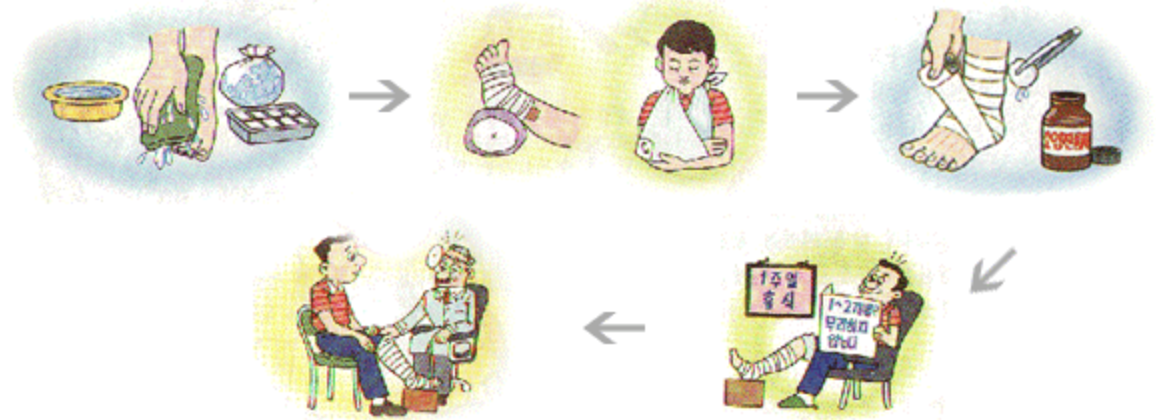 (2) 가능하면 움직이지 않고 휴식을 취합니다. 즉, 적어도 1주간은 삔 다리를 쉬도록 하며 1~2개월간은 무리해서 움직이는 것을 피하는 것이 좋습니다.