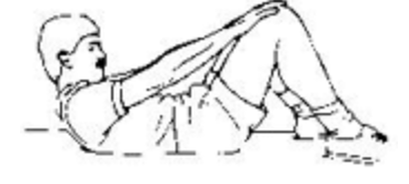 - 머리와 어깨를 천천히 들어 바닥에서 떼고 양 손을 무릎에 닿도록 한다. 10을 헤아린다.