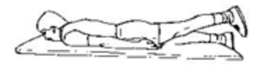 - 무릎을 구부린 채 등과 발을 바닥에 대고 눕는다.