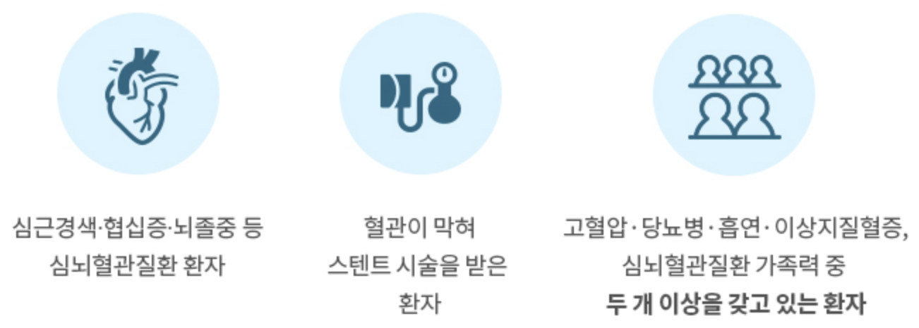 첫째, 심근경색이나 협심증, 뇌졸중 등 심뇌혈관질환을 앓았거나, 앓고 있는 환자입니다. 혈관이 막혀 스텐트 시술을 받은 환자도 저용량 아스피린을 먹어야 합니다. 심뇌혈관질환은 그 자체가 혈관 건강이 나빠졌다는 ’증거’입니다. 하나의 질환으로 드러난 것일 뿐, 실제 몸 전체의 혈관이 손상됐을 가능성이 높습니다. 뇌출혈 환자도 마찬가지입니다. 뇌출혈의 75% 가량은 고혈압으로 인해 발생합니다. 혈관이 약하고 딱딱해지면서 압력을 견디지 못해 터지는 겁니다. 뇌뿐 아니라 다른 곳의 혈관도 손상됐을 가능성이 높습니다. 뿐만 아니라 뇌출혈은 뇌 혈관이 혈전에 의해 막혀 발생하기도 하죠. 이렇듯 심뇌혈관계질환을 한 번 앓은 환자는 혈관이 이미 손상돼 혈전이 생길 위험도, 심뇌혈관질환이 발생할 위험도 보통 사람보다 훨씬 큽니다.