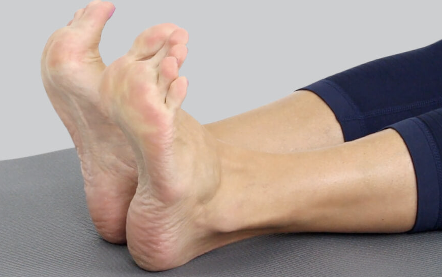 1) 앉은 자세에서 발뒤꿈치만 바닥에 닿게 한 후 발등을 몸쪽으로 굽혔다 펴기를 반복한다.