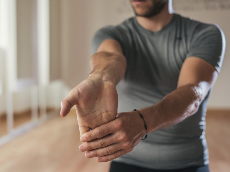 가운데손가락을 얽히게 해서 5초간 힘껏 잡아당긴 후 놓는다.