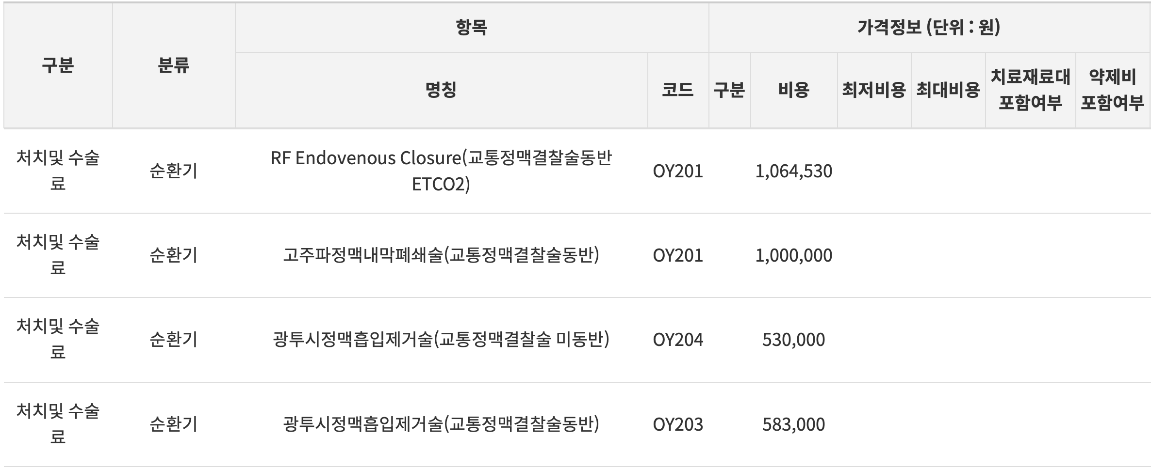 대학병원 하지정맥류 수술 치료 가격 비용 본문