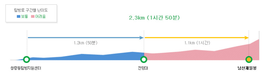 - 구간: 청량동탐방지원센터 → 전망대 → 남산제일봉