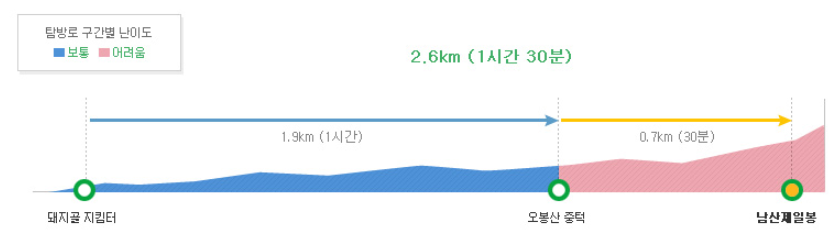 - 구간: 돼지골 지킴터 → 오봉산 중턱 → 남산제일봉