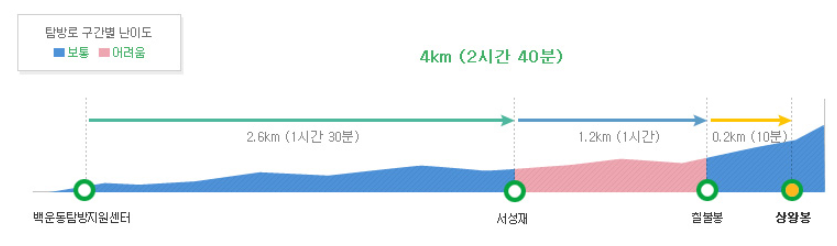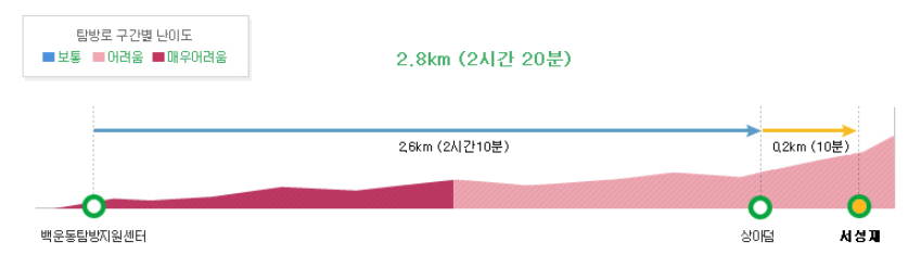 - 구간: 백운동탐방지원센터 → 상아덤 → 서성재