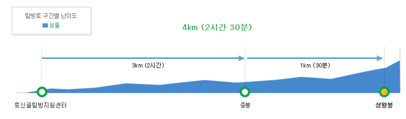 - 구간: 토산골탐방지원센터 → 중봉 → 상왕봉