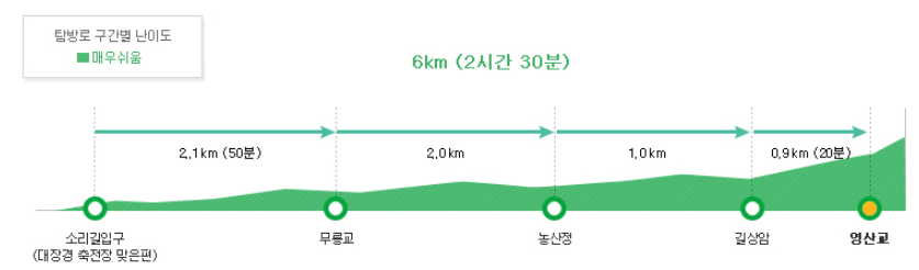 - 구간: 소리길 입구 → 무릉교 → 농산정 → 길상암 → 영산교