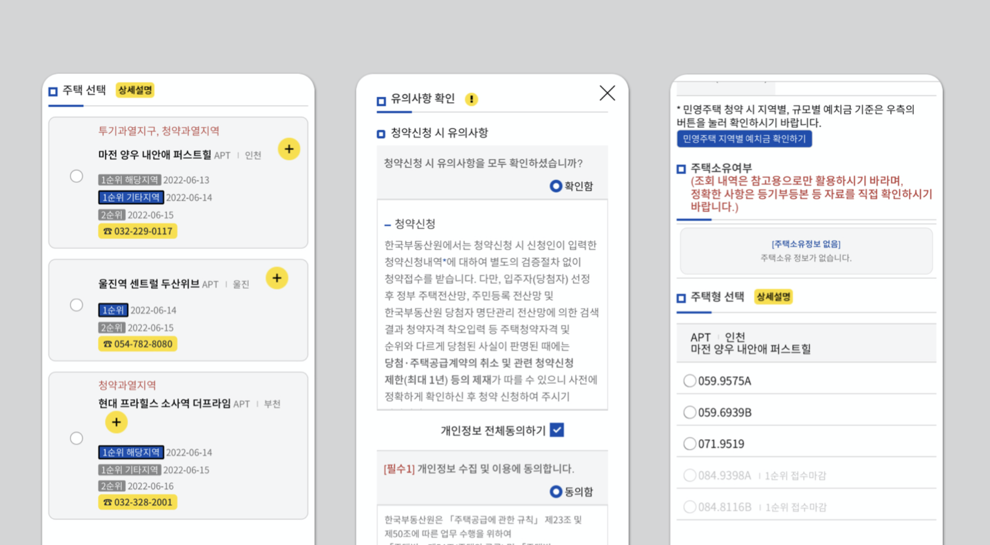 청약하고자 하는 주택을 선택하세요. 중간에 안내되는 유의사항은 꼼꼼히 읽어보는 걸 추천해 드려요.