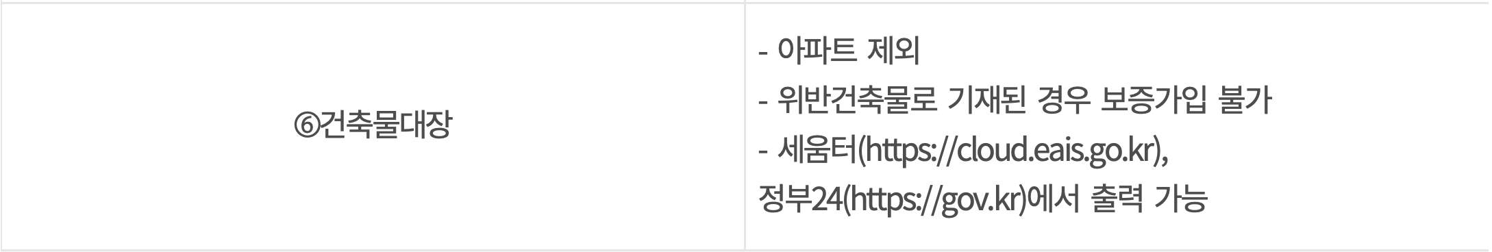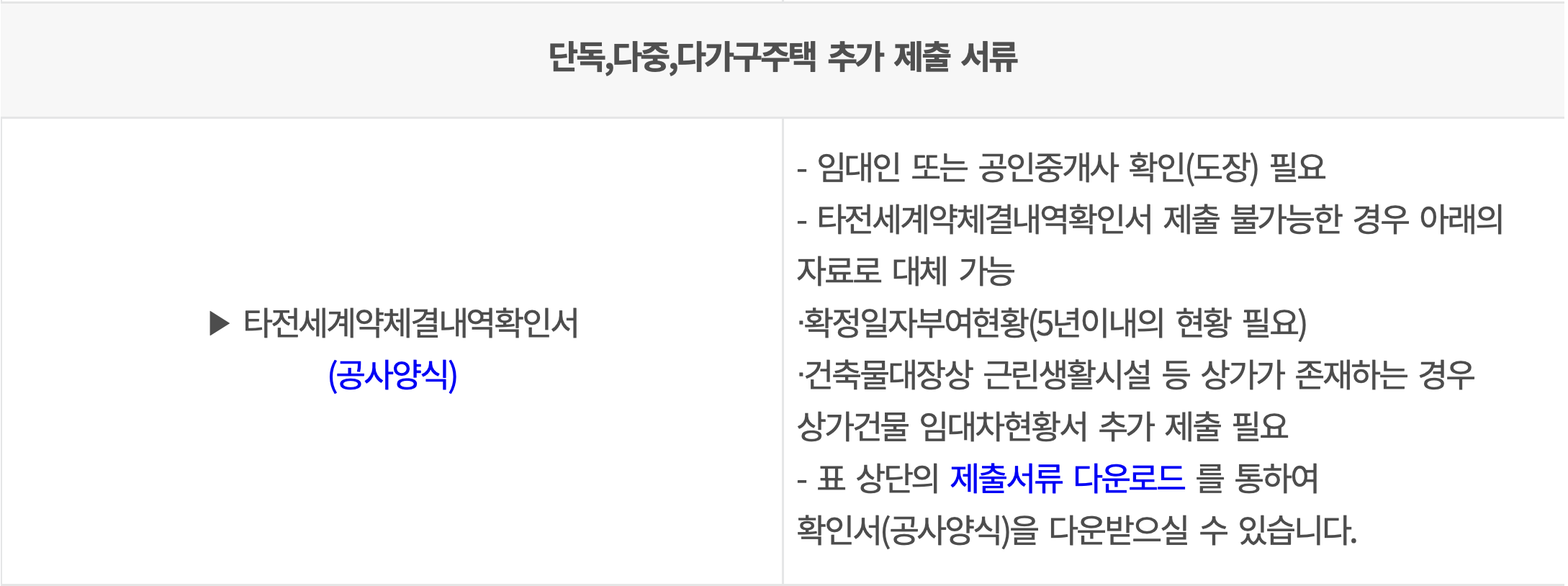 - 단독,다중,다가구주택의 경우 건물 전체의 전입세대열람내역서 제출 필요