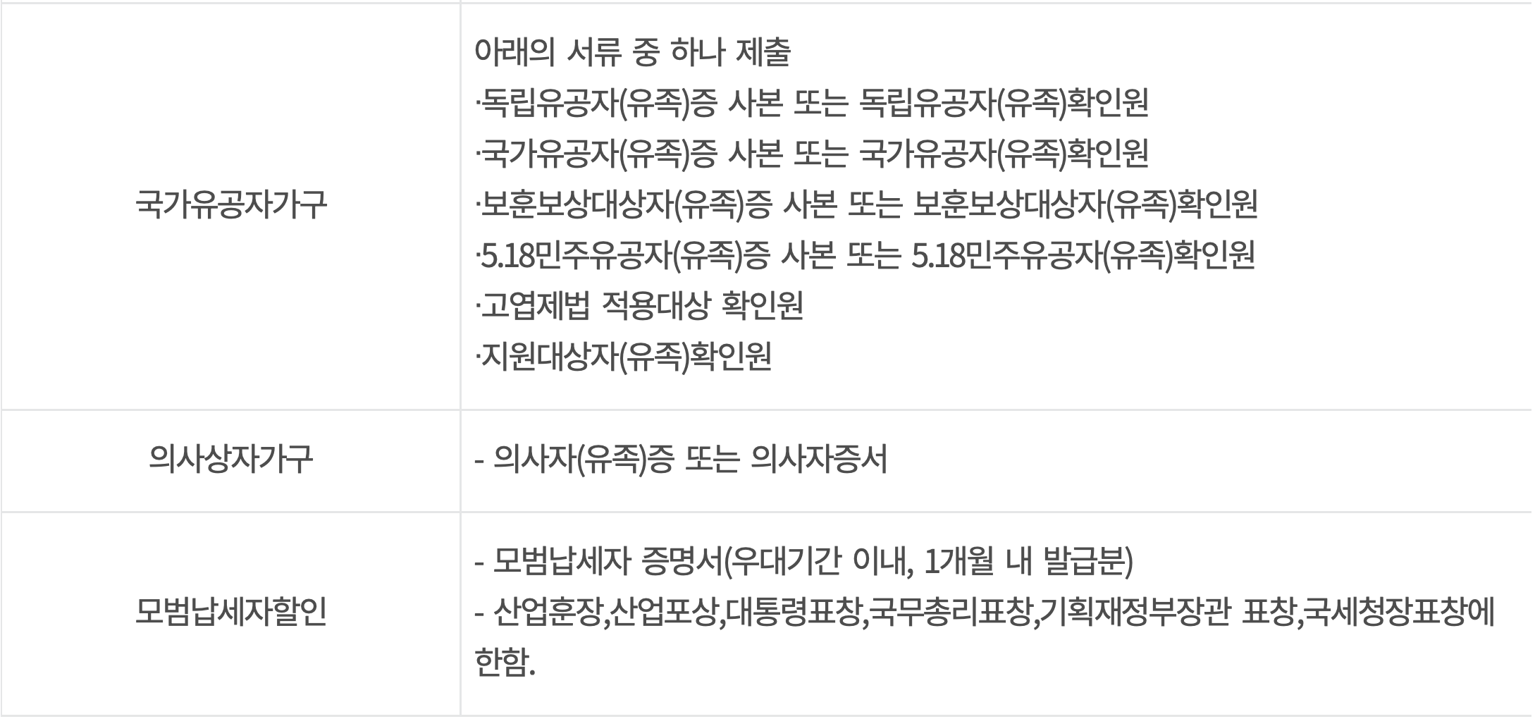 ·국가유공자(유족)증 사본 또는 국가유공자(유족)확인원