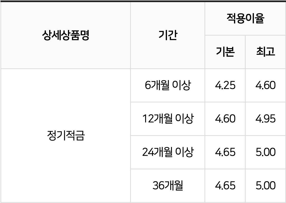 * 기본금리는 가입월 기본금리 기준임[기본금리 : 단리, 우대금리 미포함(우수회원,인터넷)]