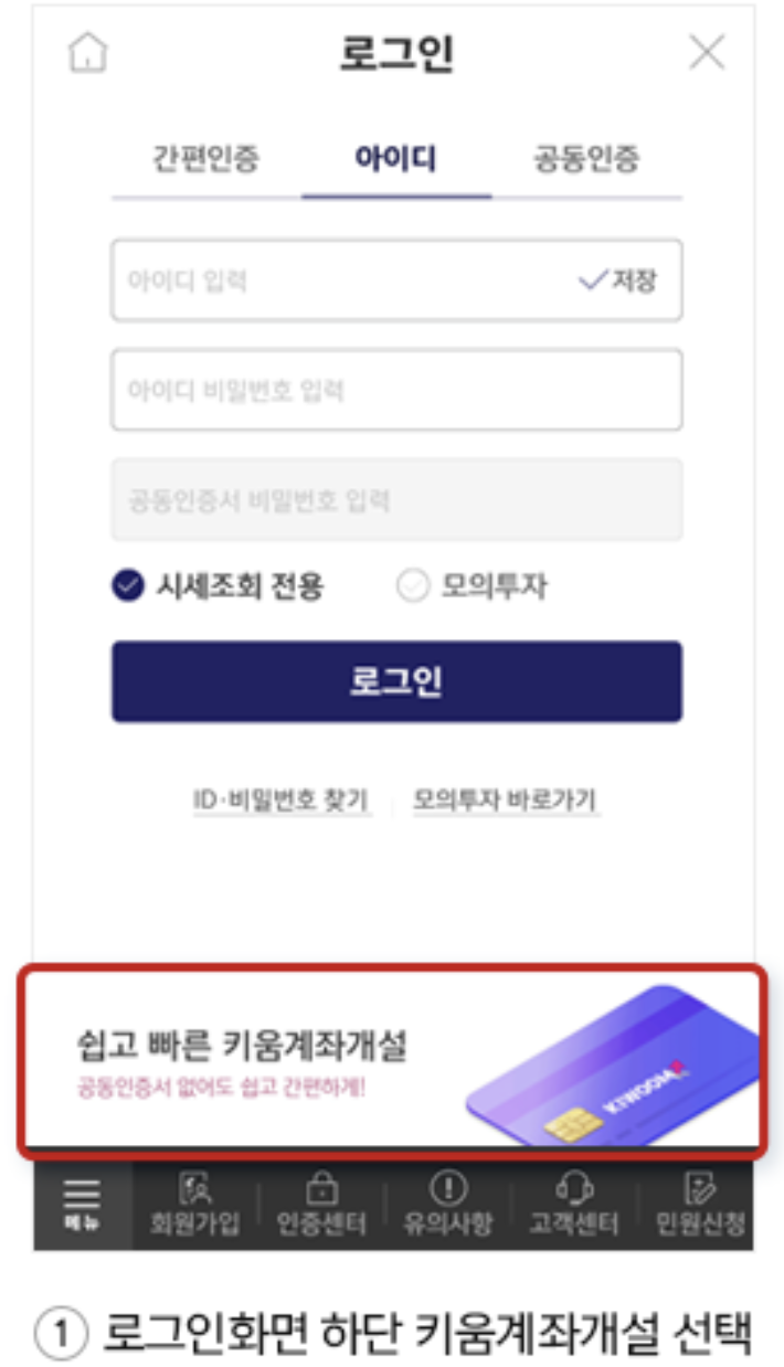 1) 로그인화면 하단 키움계좌개설 선택