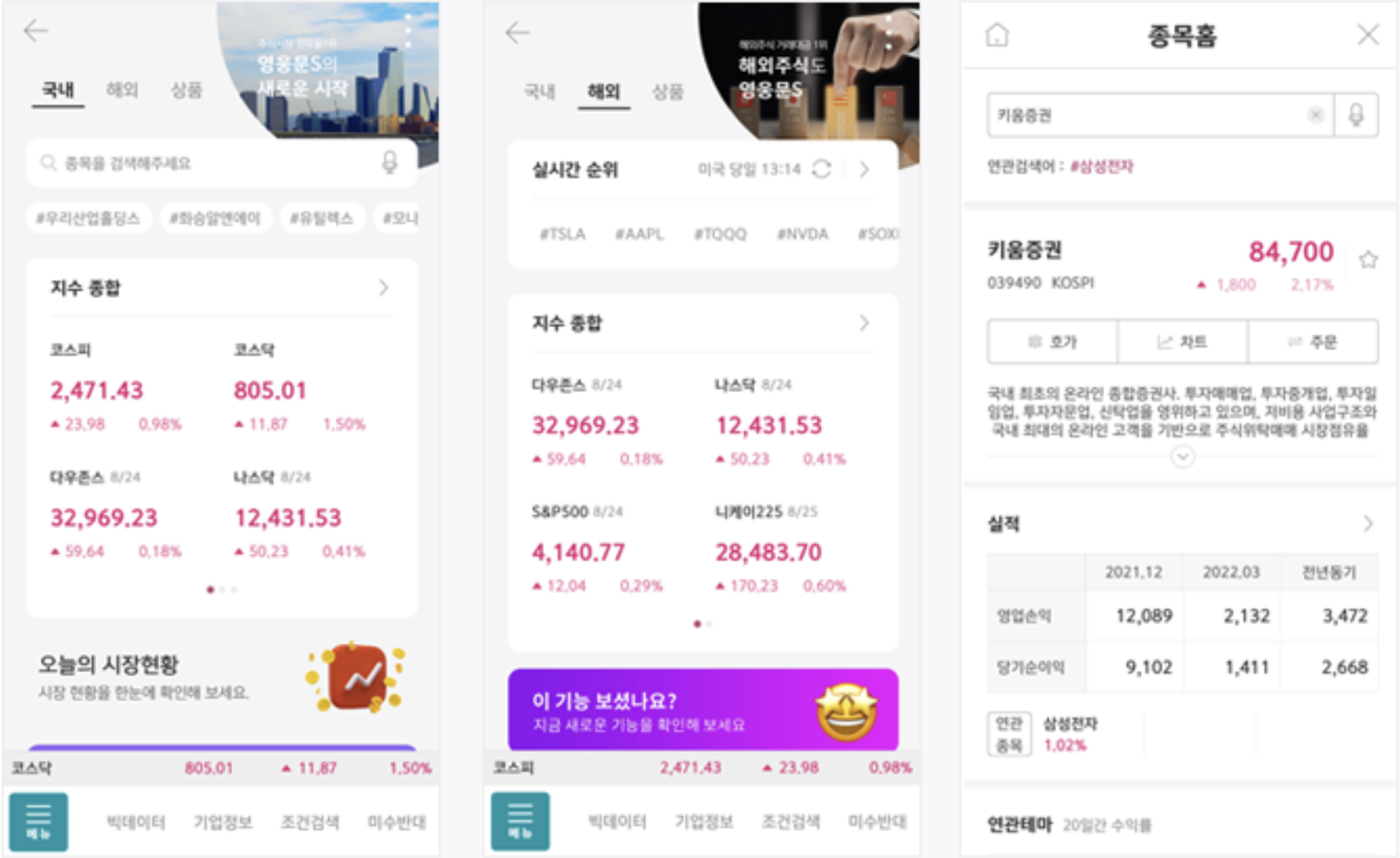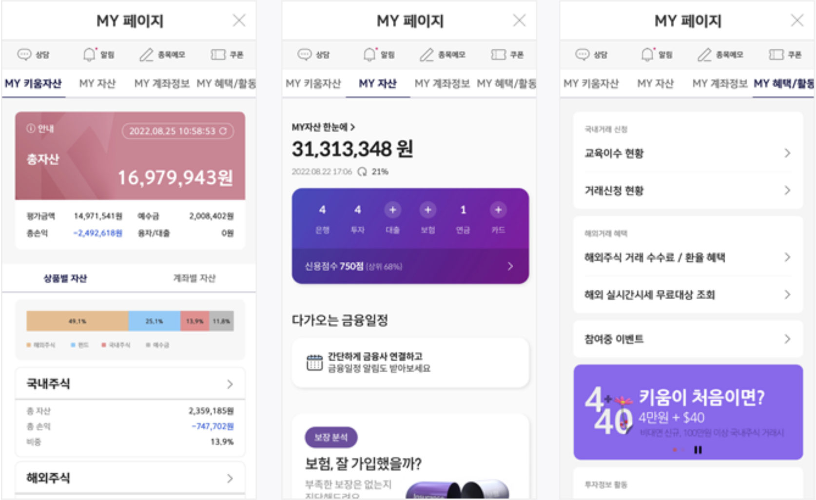 MY키움자산, MY자산, MY혜택/활동 등 개인화 서비스